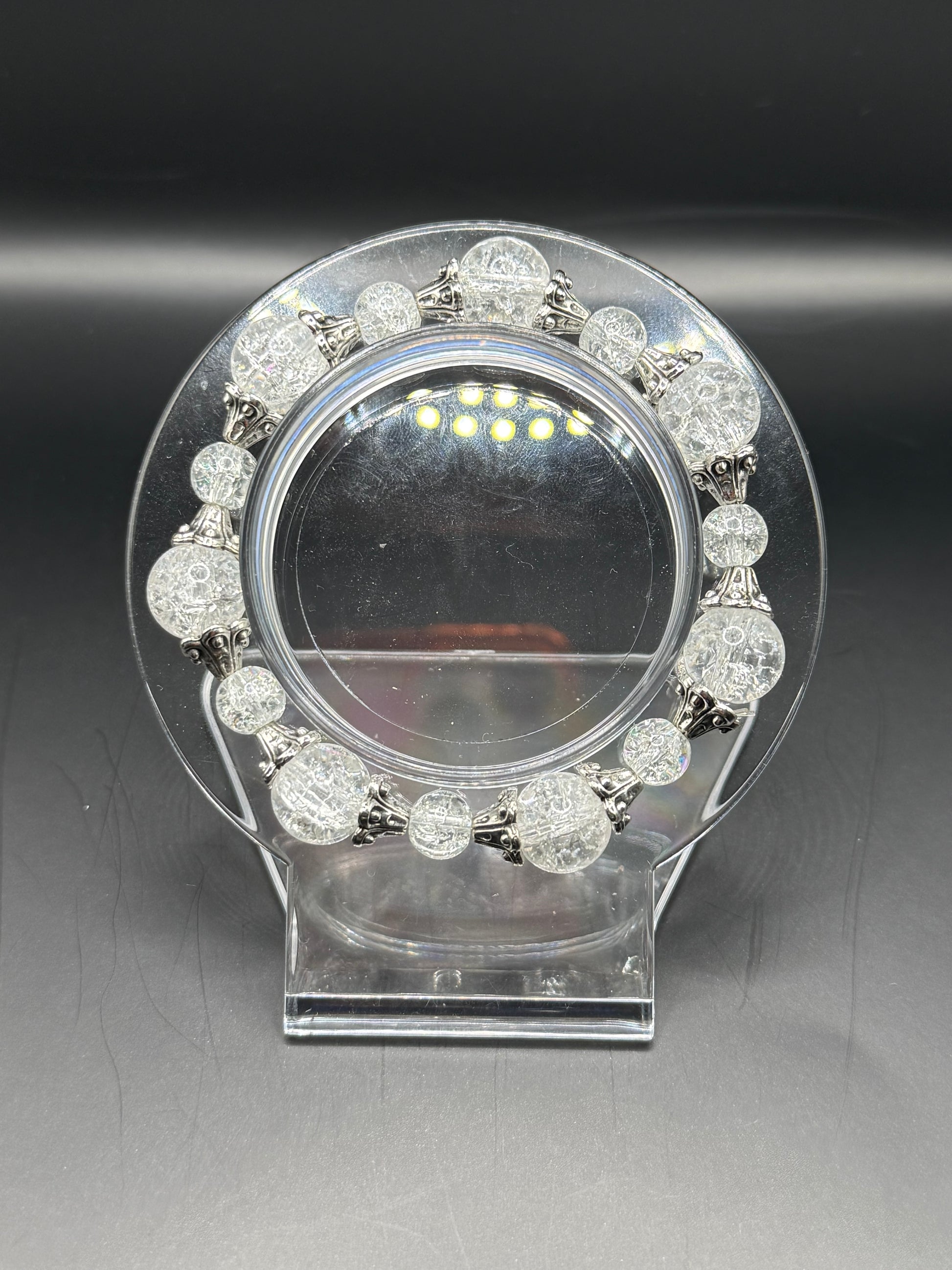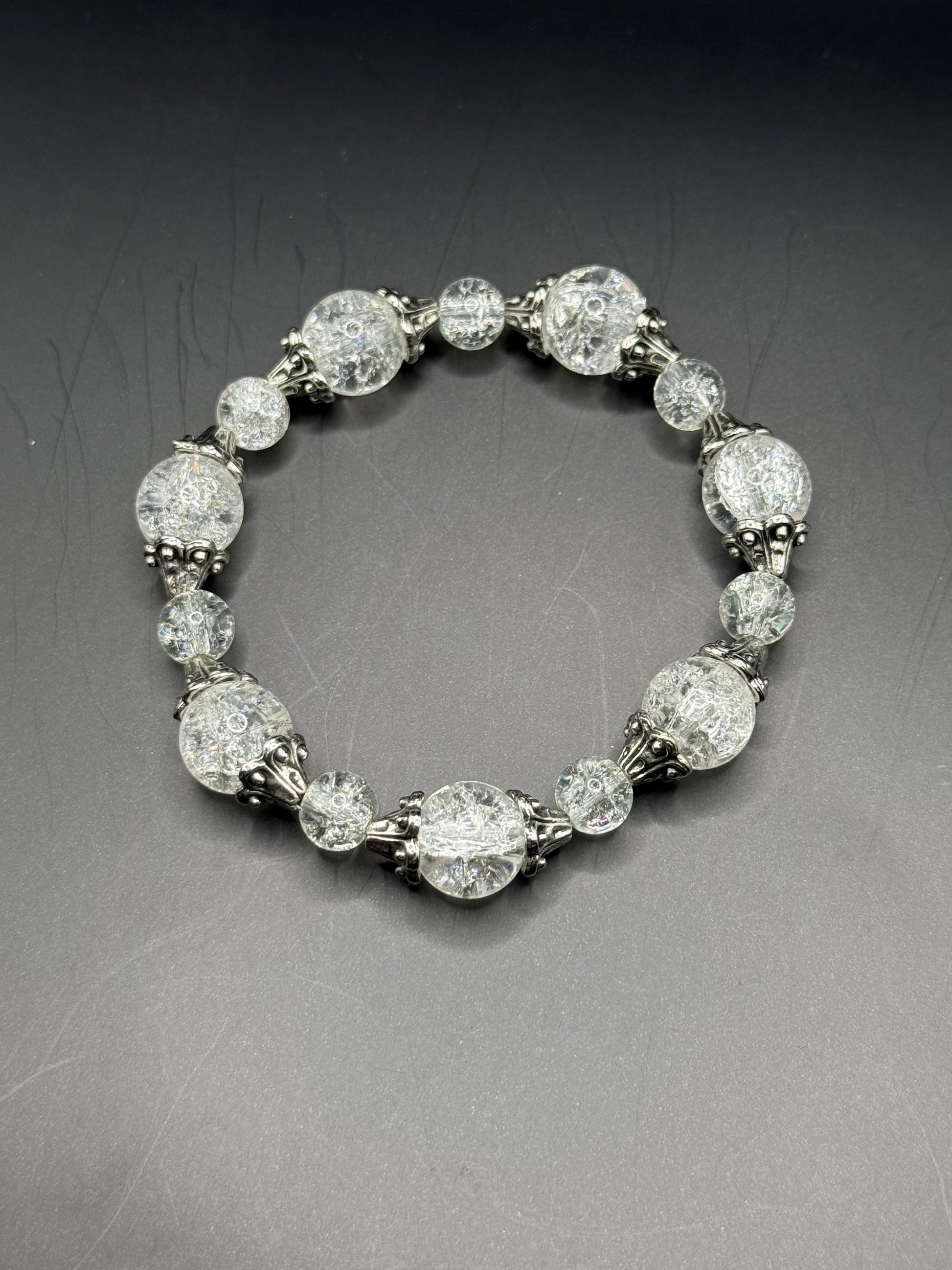 Clear cracked glass beaded bracelet with silver spacers
