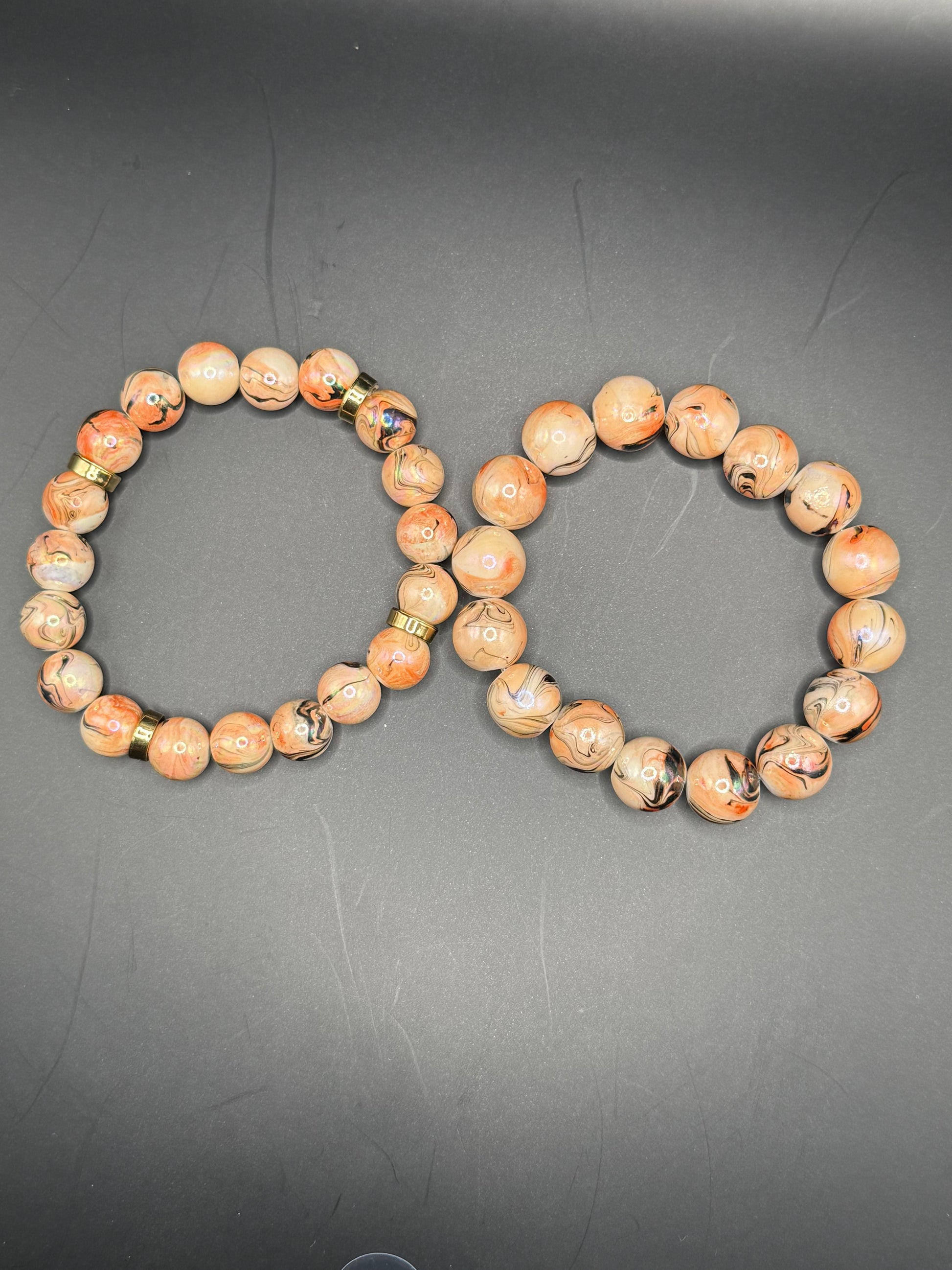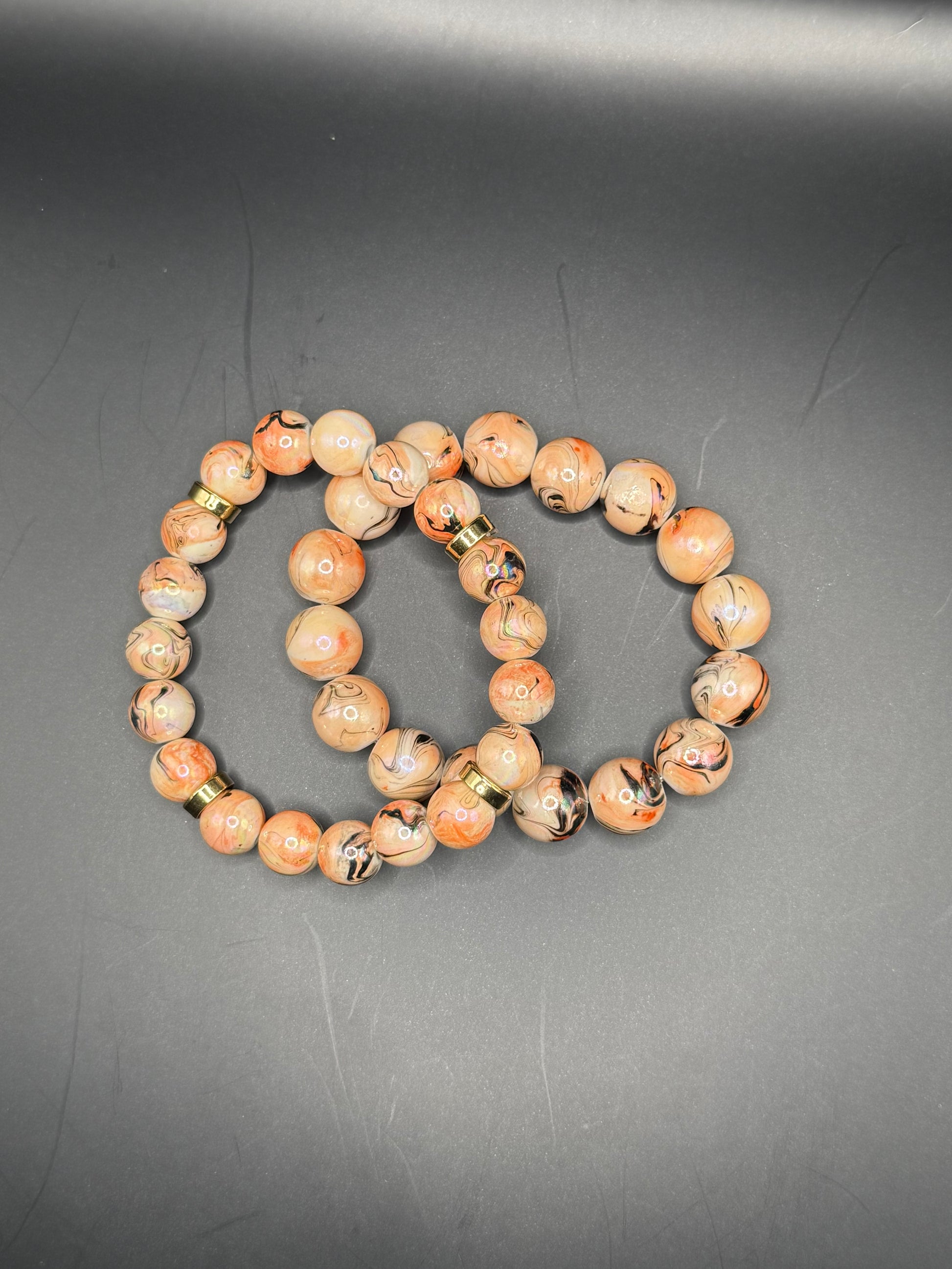 2 bracelets for the price of one. One is 10-12mm and the other is 8mm. The 8mm has gold spacers.